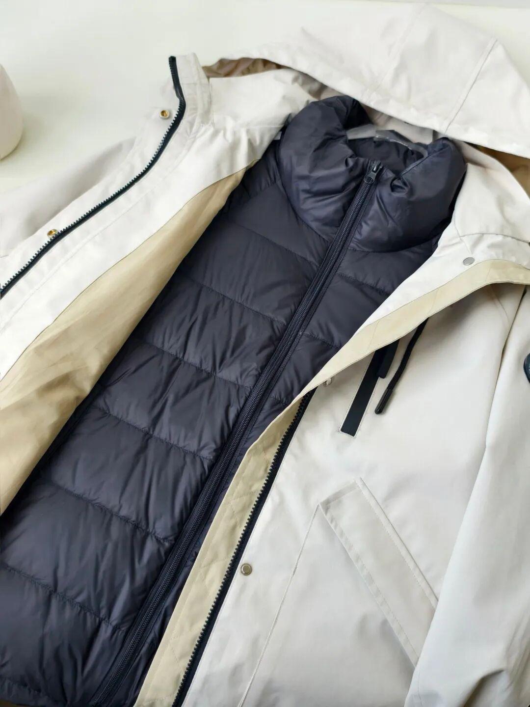 内胆就是一件轻便型羽绒服,袖子上两条织带设计,加长加宽的螺纹袖口,抽绳下摆可调节松紧,防风保暖,运动风的羽绒内胆,可单穿可内搭
